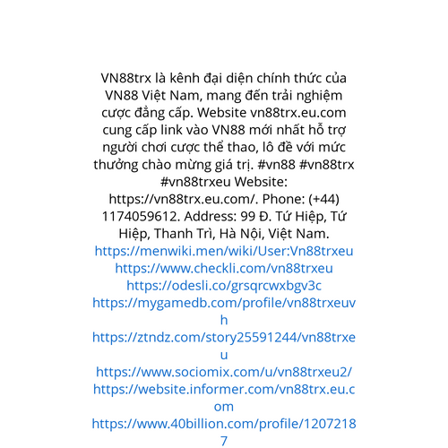 Website: https://vn88trx.eu.com/. VN88trx là kênh đại diện chính thức của VN88 Việt Nam, mang đến trải nghiệm cược đẳng cấp. Website vn88trx.eu.com cung cấp link vào VN88 mới nhất hỗ trợ người chơi cược thể thao, lô đề với mức thưởng chào mừng giá tr