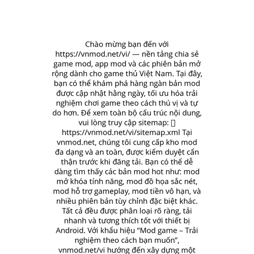 Website: https://vnmod.net/vi/. Chào mừng bạn đến với https://vnmod.net/vi/ — nền tảng chia sẻ game mod, app mod và các phiên bản mở rộng dành cho game thủ Việt Nam. Tại đây, bạn có thể khám phá hàng ngàn bản mod được cập nhật hằng ngày, tối ưu hóa t