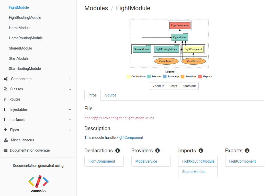 As you understand, Compodoc is a documentation tool for Angular applications