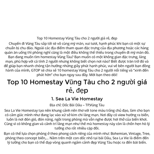 Top 10 Homestay Vũng Tàu cho 2 người giá rẻ, đẹp