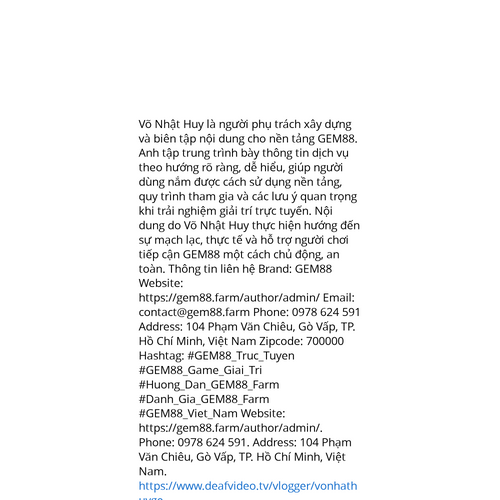 Website: https://gem88.farm/author/admin/https://gem88.farm/author/admin/ Võ Nhật Huy là người phụ trách xây dựng và biên tập nội dung cho nền tảng GEM88. Anh tập trung trình bày thông tin dịch vụ theo hướng rõ ràng, dễ hiểu, giúp người dùng nắm được cách sử dụng nền tảng, quy trì