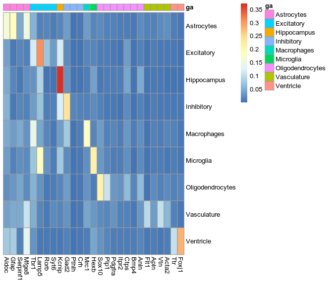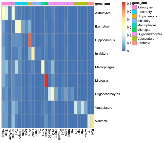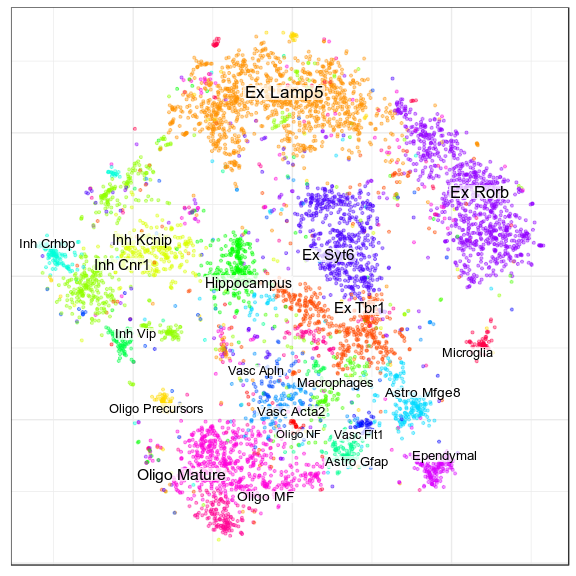 not expressed: Hexb, Mrc1, Aldoc, Gfap, Gad2, Tbr1