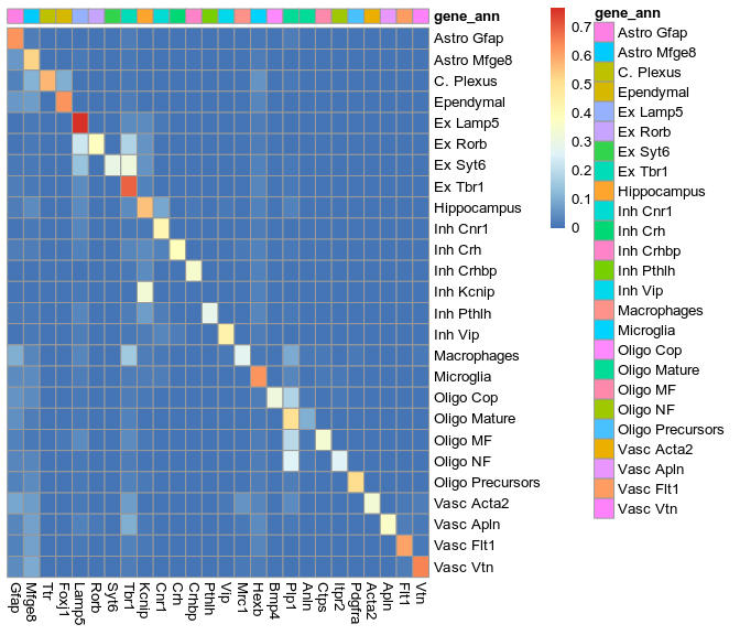 not expressed: Hexb, Lamp5, Mrc1, Gad2, Sox10, Rorb, Tbr1, Syt6, Plp1