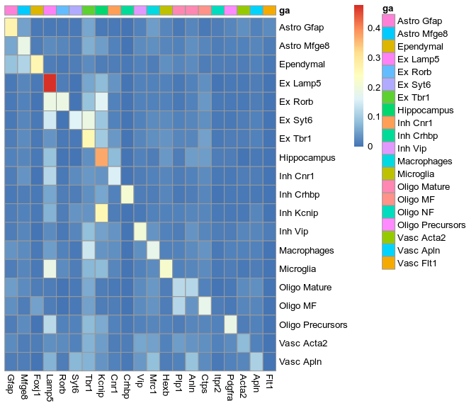 not expressed: Rorb, Lamp5, Syt6, Cpne5, Gfap, Mfge8, Plp1