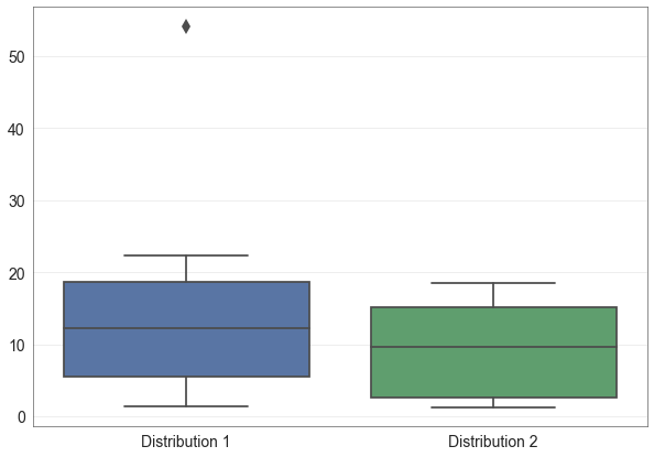 Distribution 2: 1.3 1.5 1.6 3.5 4.4 9.6 10.9 13.9 16.4 16.7 18.5