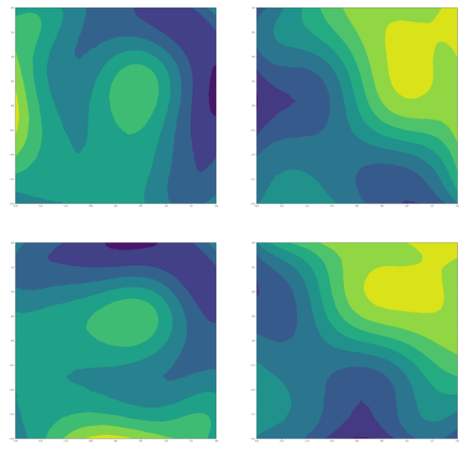 Samples of two permutation invariant functions (reflected across 45\(^{\circ}\) line.) modelled by the kernel.