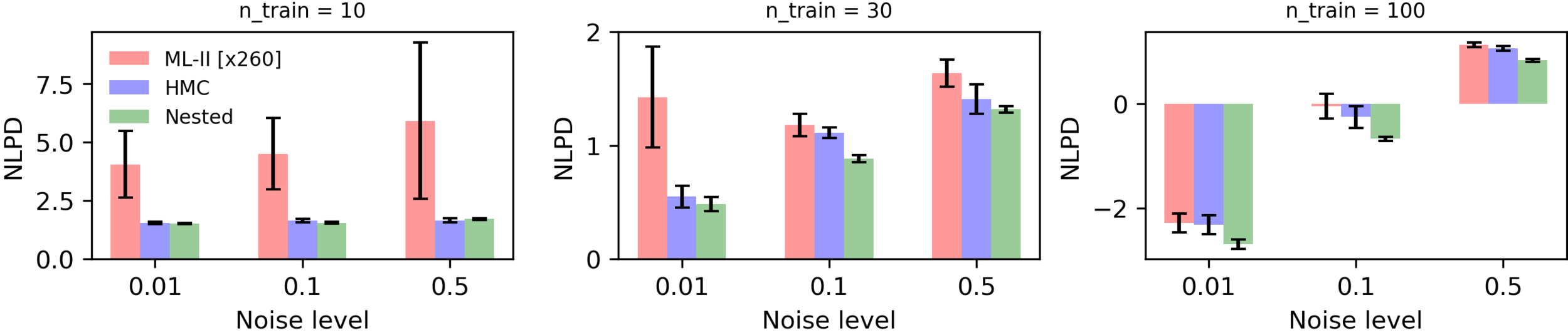Marginalised GPs give robust prediction intervals by accounting for hyperparameter uncertainty. Their advantage over ML-II become particularly pronounced when expressive kernels with several hyperparameters are used or where the training data is either sparse or noisy.