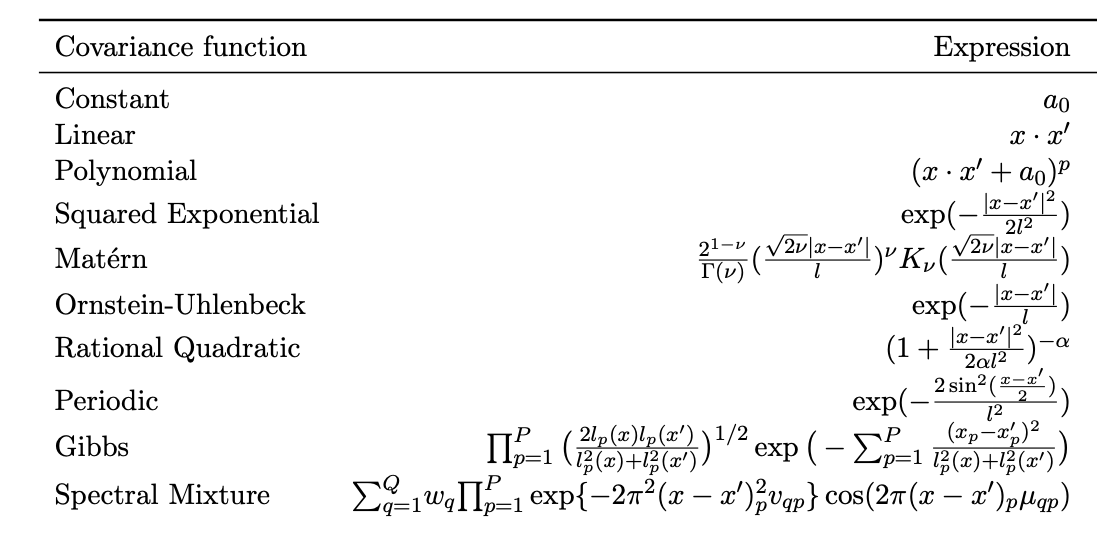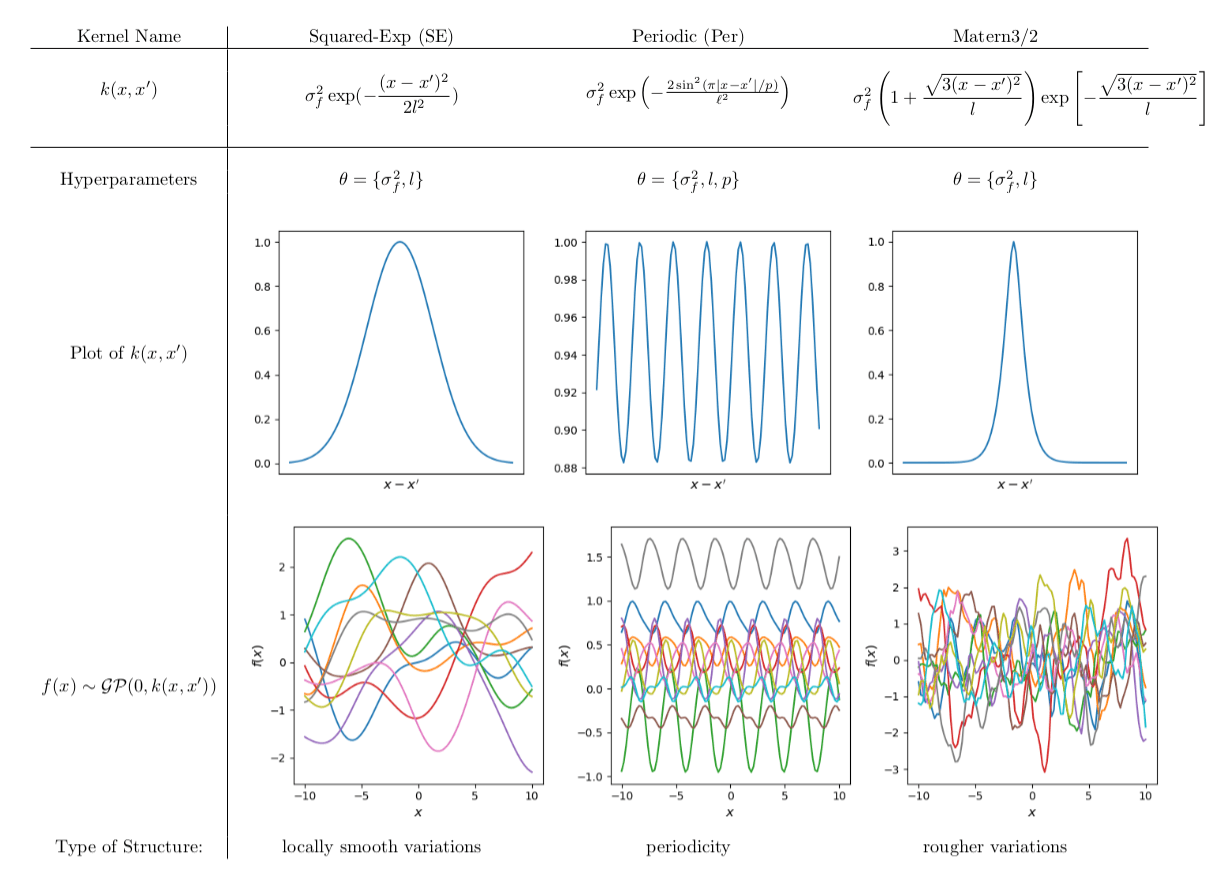 Each kernel depends on some hyperparameters \( \theta\), which are tuned in the training step.
