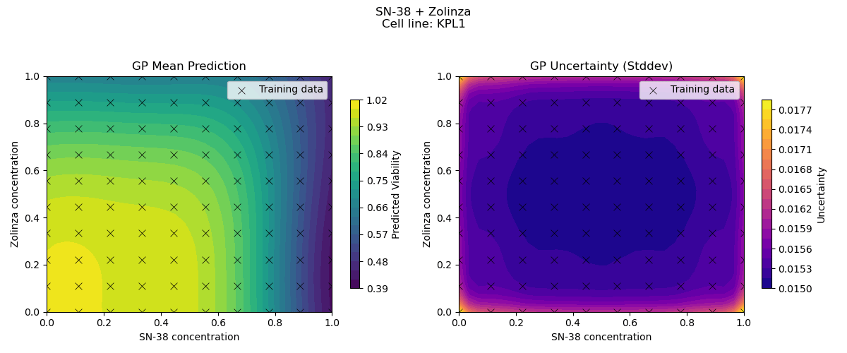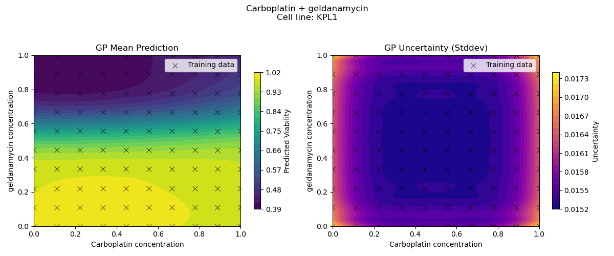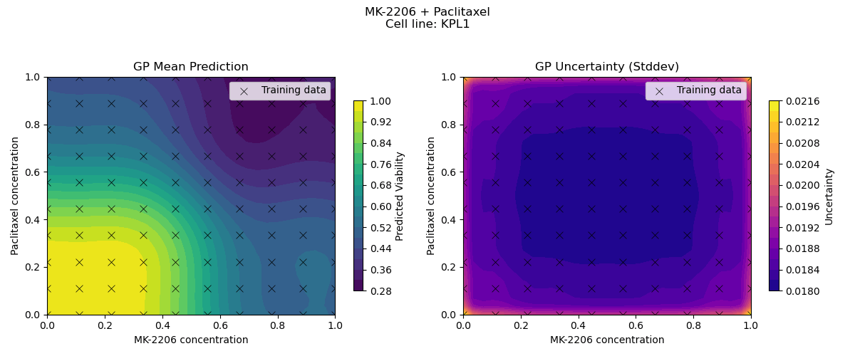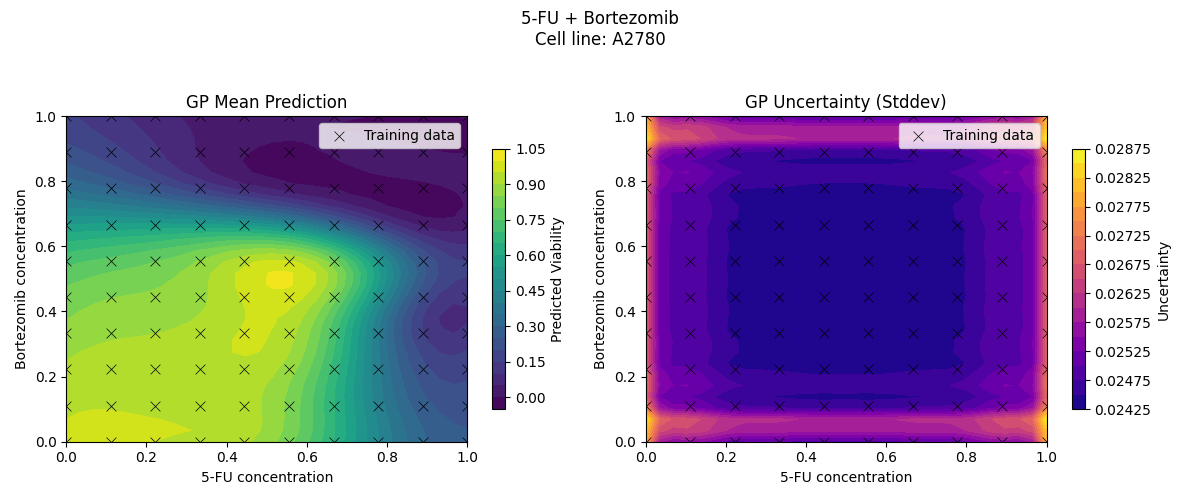 Sample drug synergy surfaces [2d fitted with a GP]