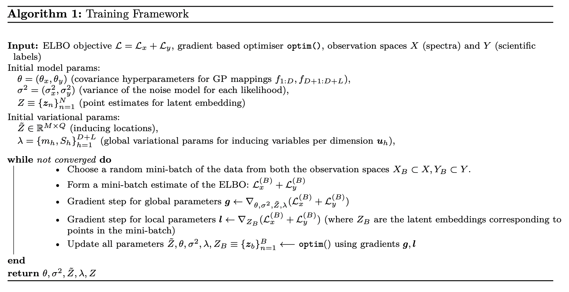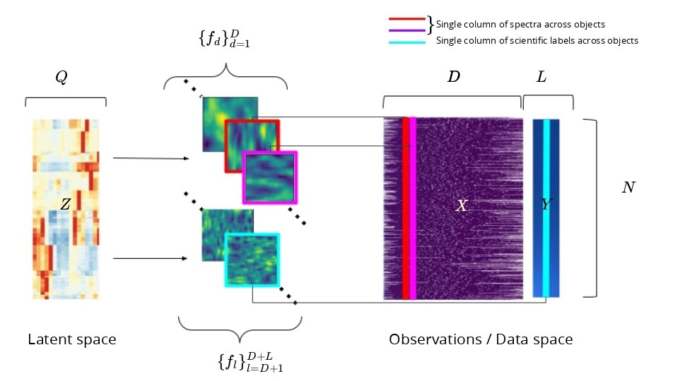 Crux: We use two groups of GPs to model the spectra and the labels, however, they share the same latent space.