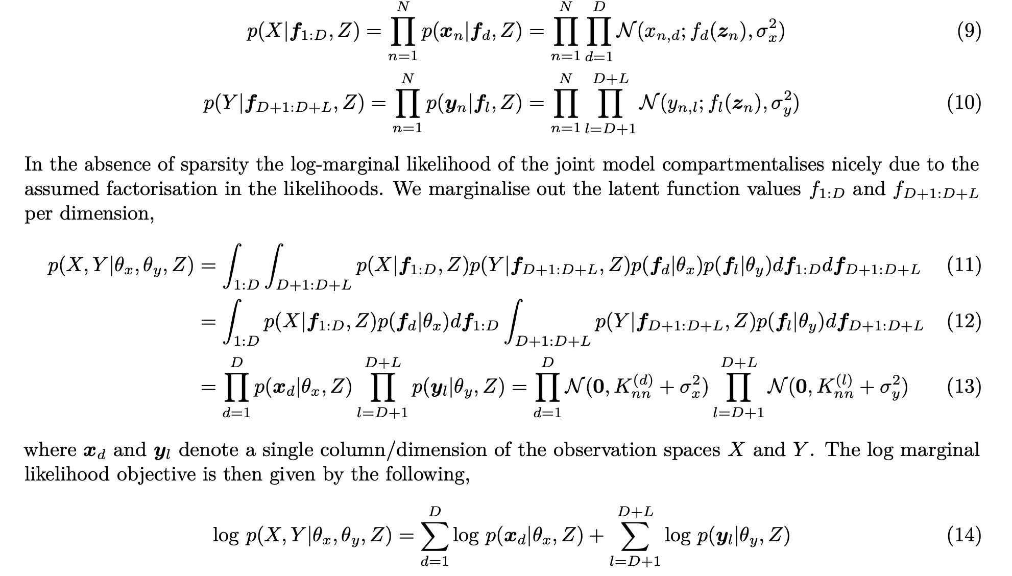 Gaussian processes can also be used in contexts where the observations are a gigantic data matrix \( Y \equiv \{ y_{n}\}_{n=1}^{N}, y_{n} \in \mathbb{R}^{D}\). \(D\) can be pretty big \(\approx 1000s\).