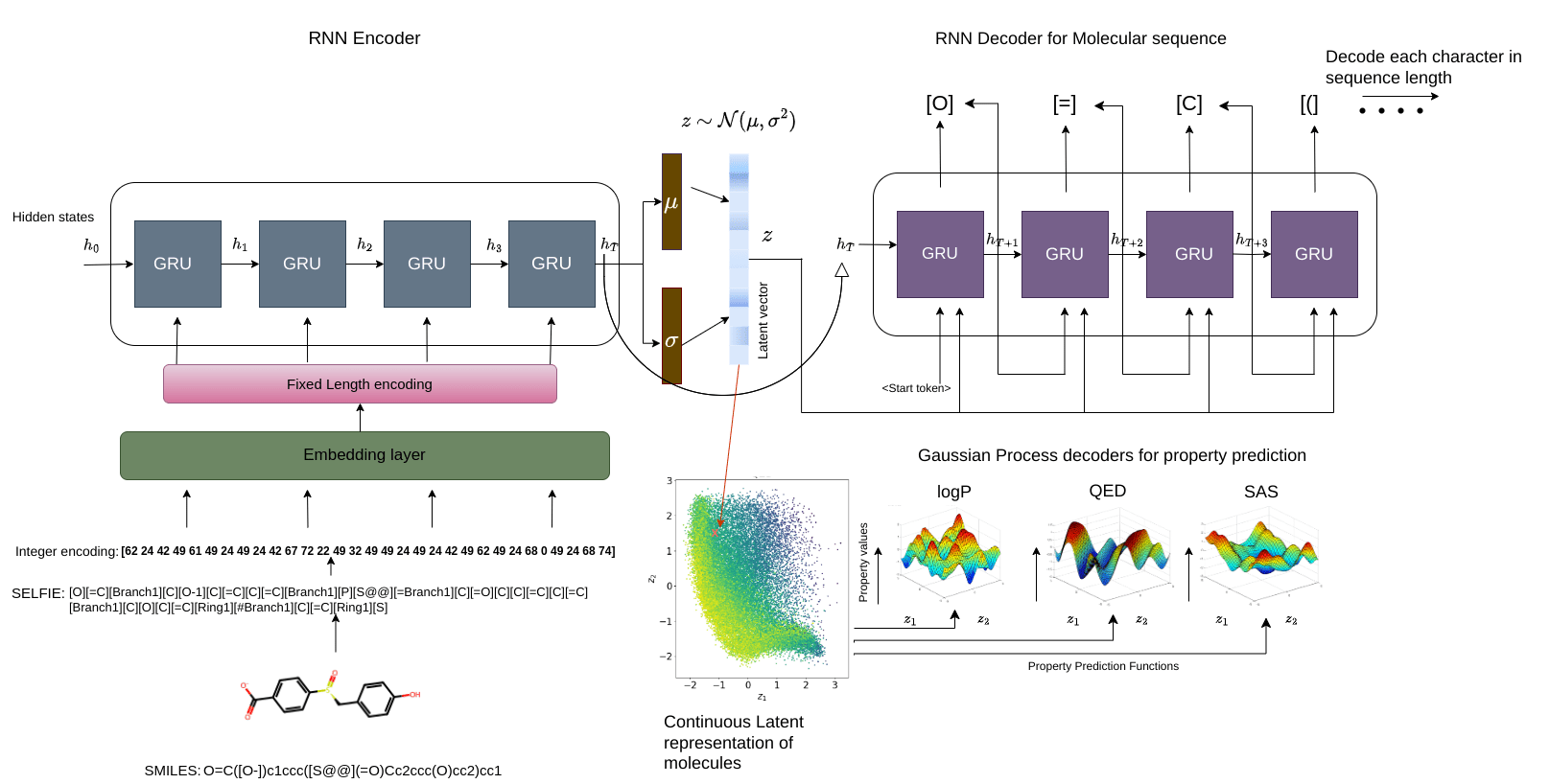 Seq2Seq Model with SELFIES: Gaussian process property decoders