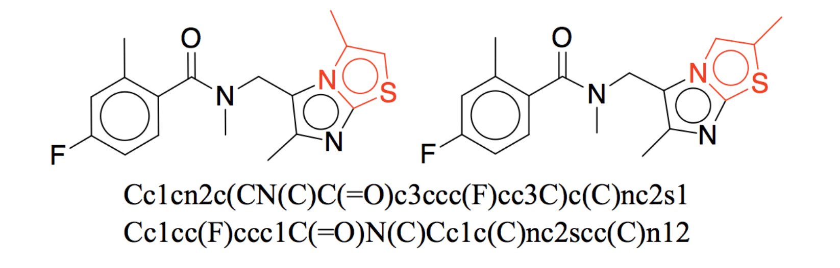 Two almost identical structures with very different SMILES strings.