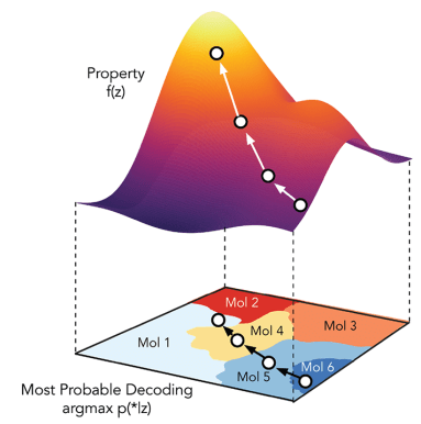 Traverse the continuous representation of the chemical space (through optimisation)
