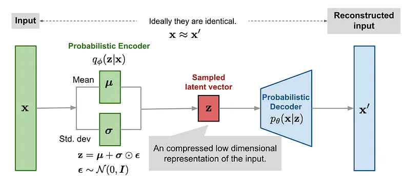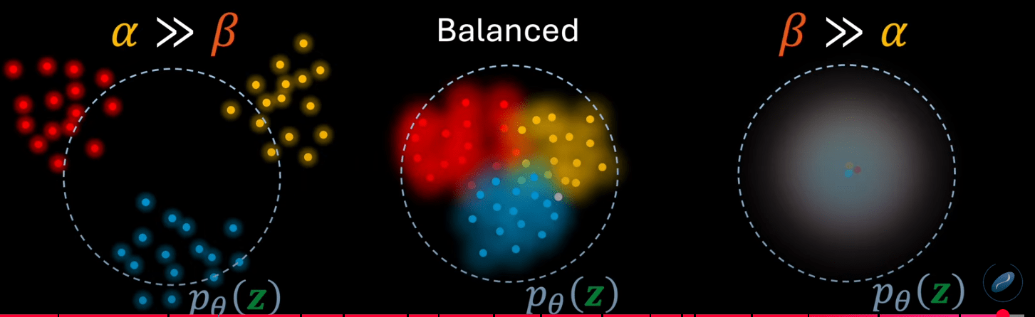 VAE Loss = \( \mathcal{L}_{\text{recon}} + \mathcal{L}_{\text{KL}}\)