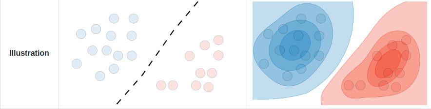 In a discriminative model, we instead directly learn the conditional distribution \(p(y|x)\) i.e. a decision boundary, in the case of classification, or regression models we learn to predict \( y\) from \( x\).