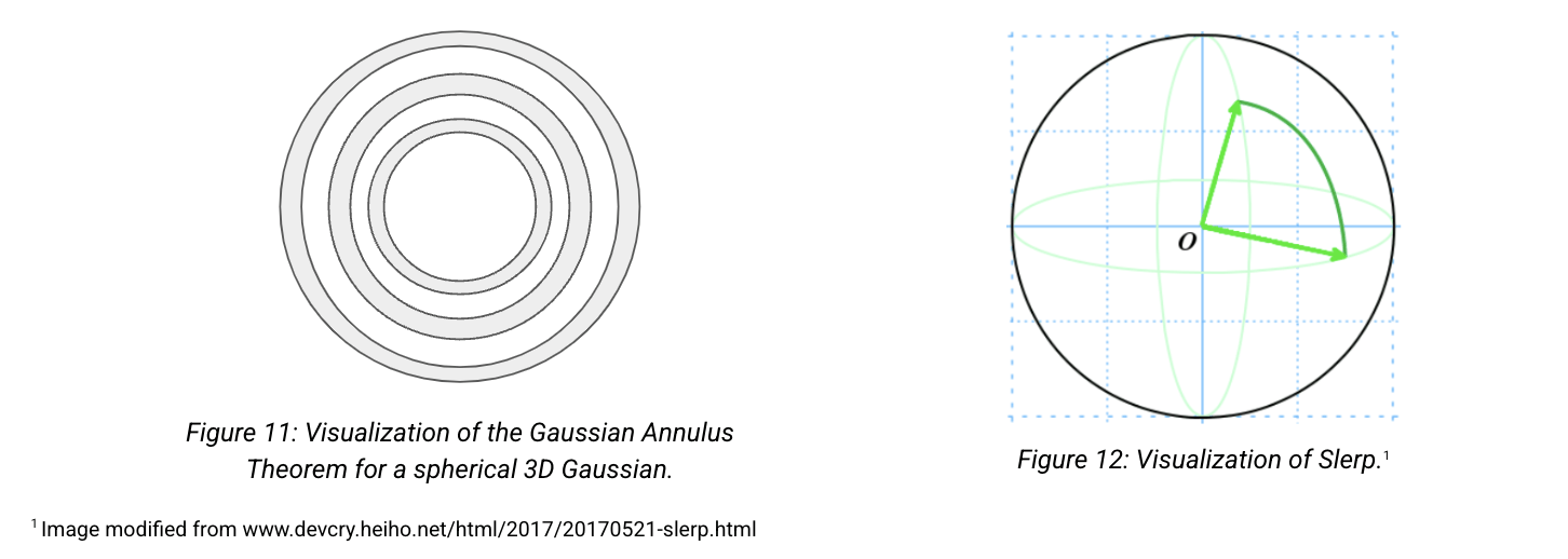 Instead of interpolating between two points by traversing the low-density Euclidean interpolation, traverse across the surface of this high-density shell. This is known as Spherical Linear Interpolation (Slerp).