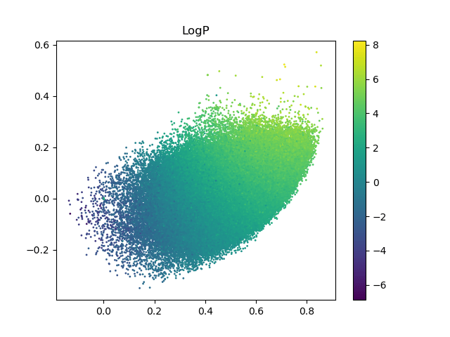 Points shaded by actual QED (drug-likeness) scores