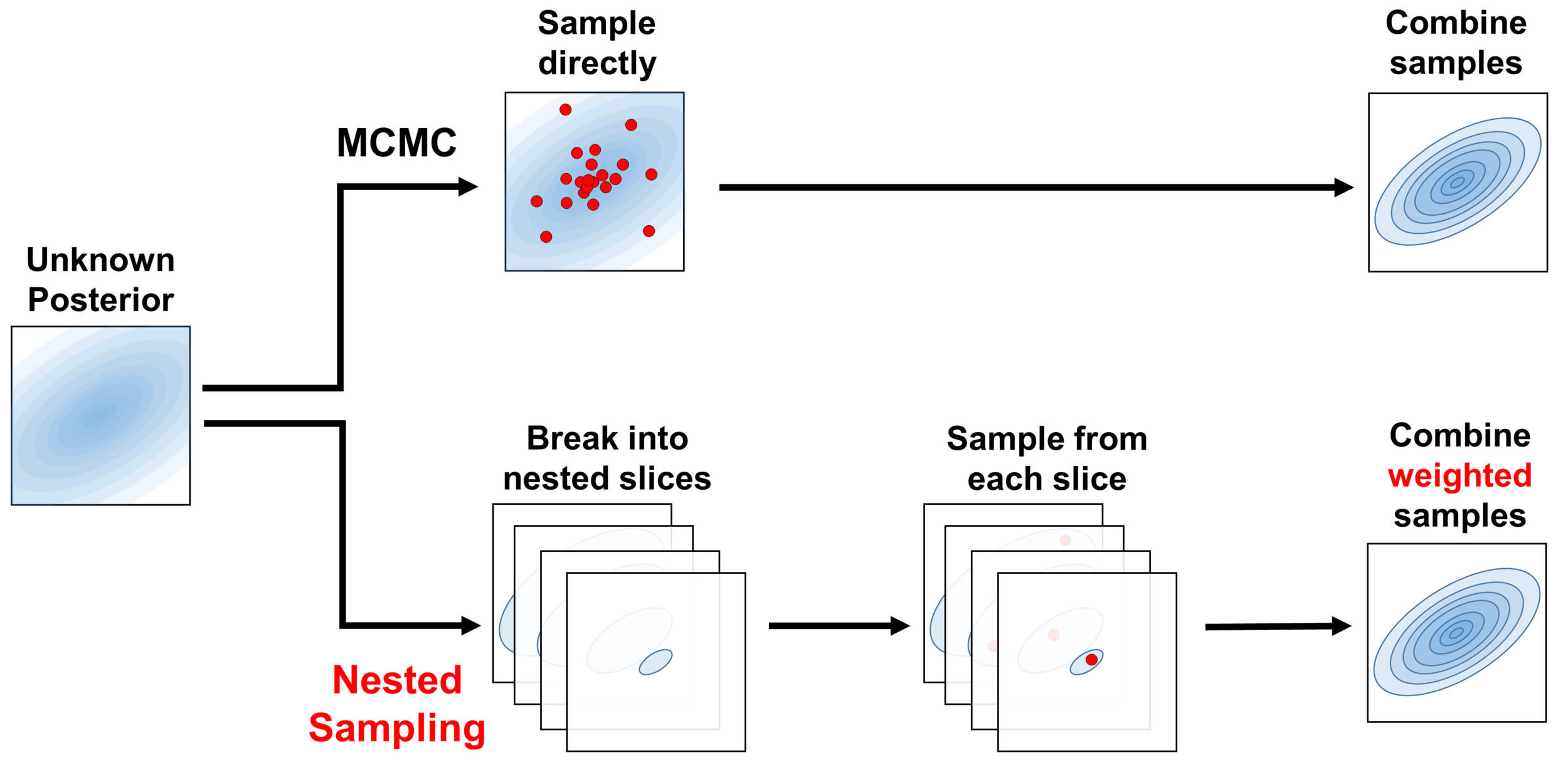 (images from An Intro to dynamic nested sampling. Speagle (2017) )