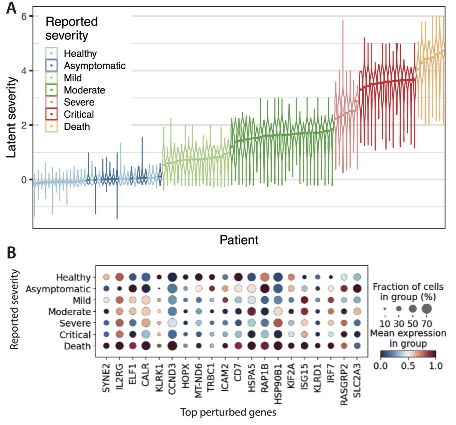 One of the latent dimensions captures gradations of COVID severity across patients. when averaged