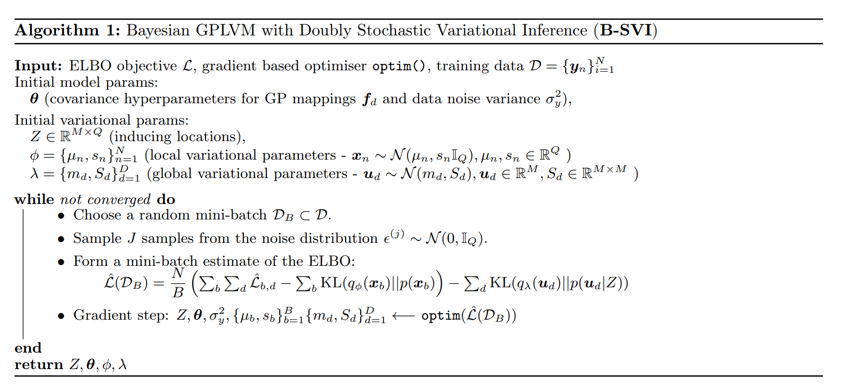 Stochastic variational inference for GP regression was introduced in Hensman et al (2013). In this work we use the SVI bound in the latent variable setting with unknown \(X\) and multi-output \(Y\).