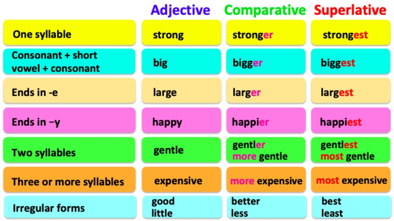 Watch the next video and complete with the correct comparative or superlative adjective.