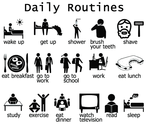 Write in your notebook 5 affirmative sentences and 5 negative sentences about his daily routine.