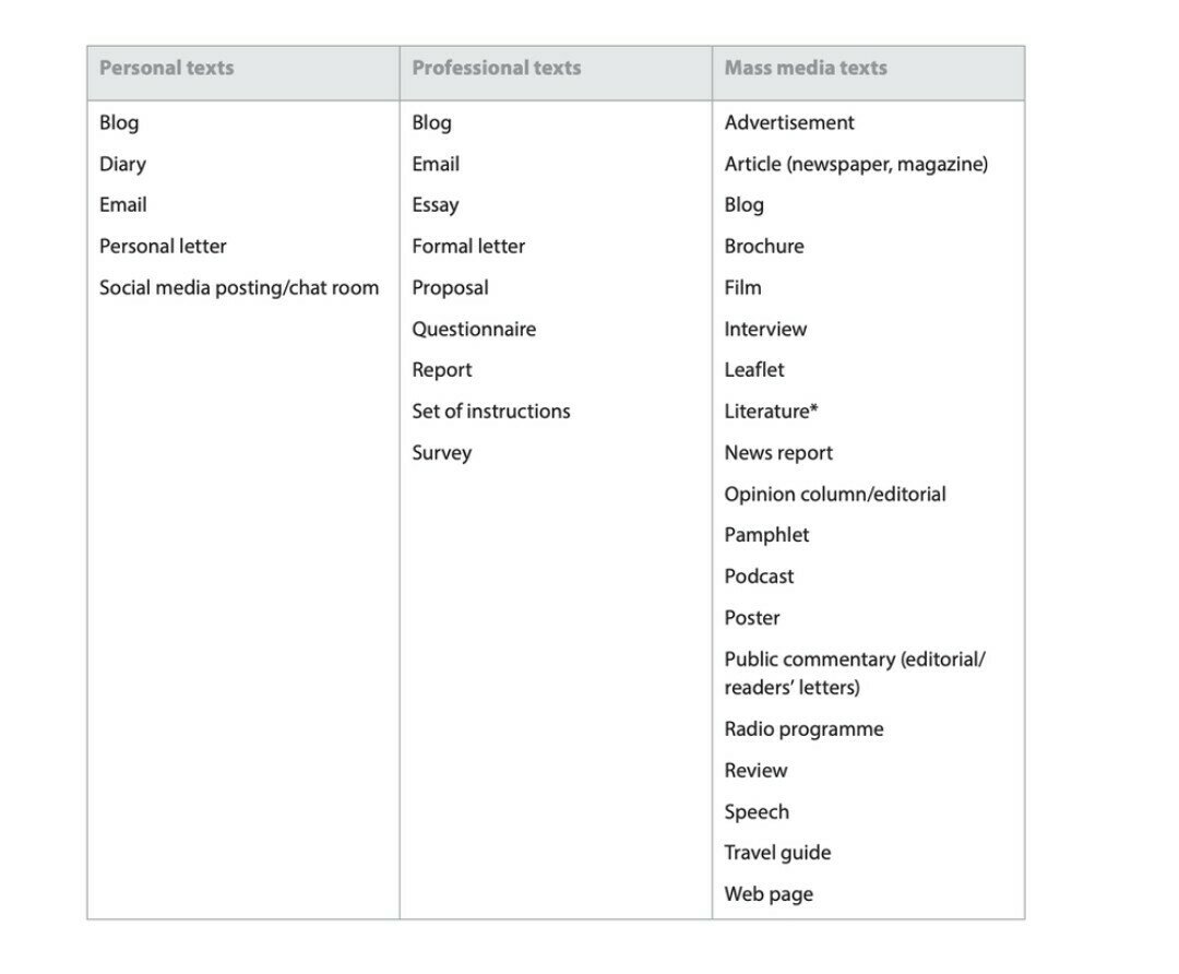 - Conceptual understanding: choice of the type of text is appropriate to the audience and context.