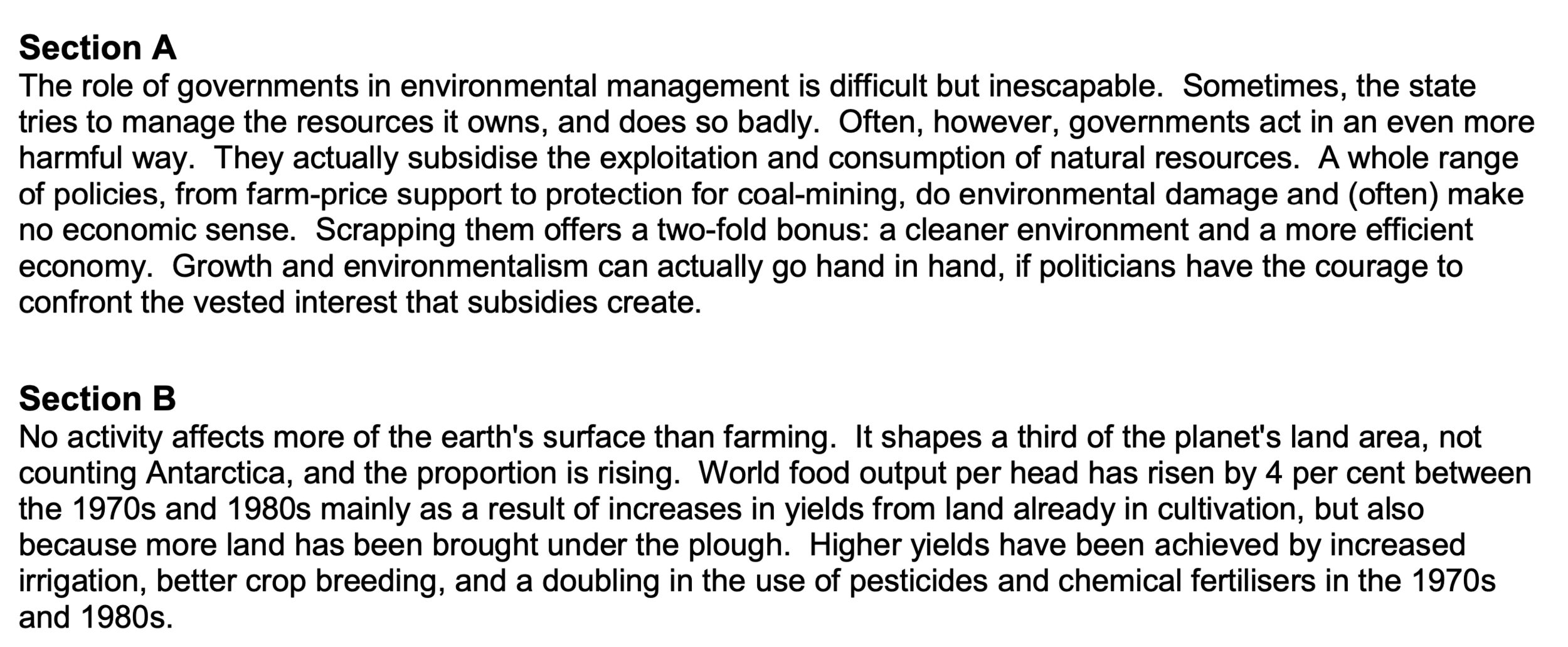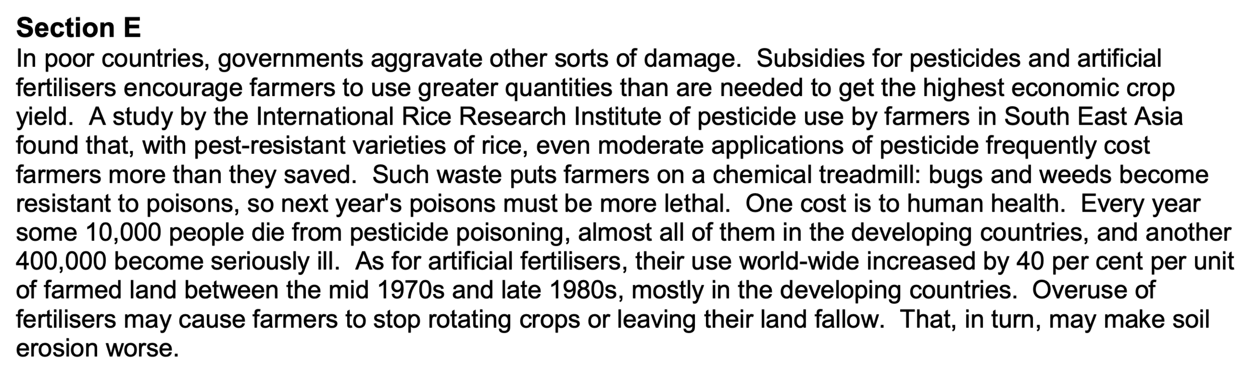 Skimming and scanning after reading the entire text - key words taken from the questions