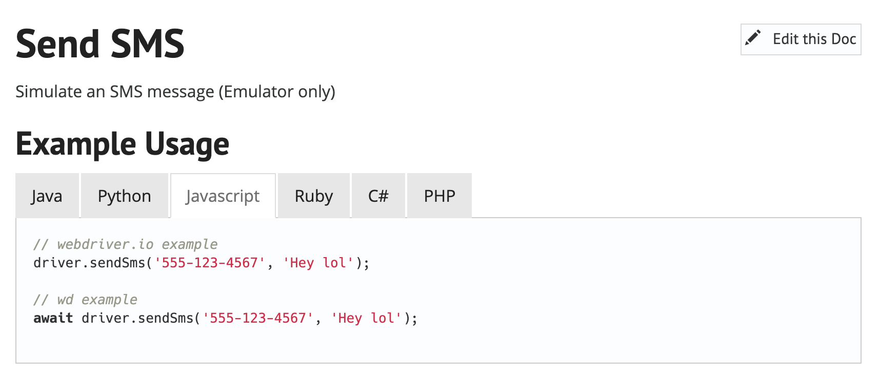 adb emu sms send '6505551212' 'Hello from adb'appium-adbappium-android-driverappium-base-driverappiumappium clientsimplement adb emu command in