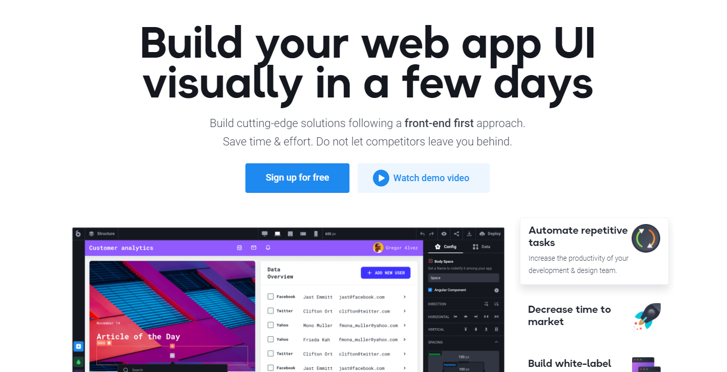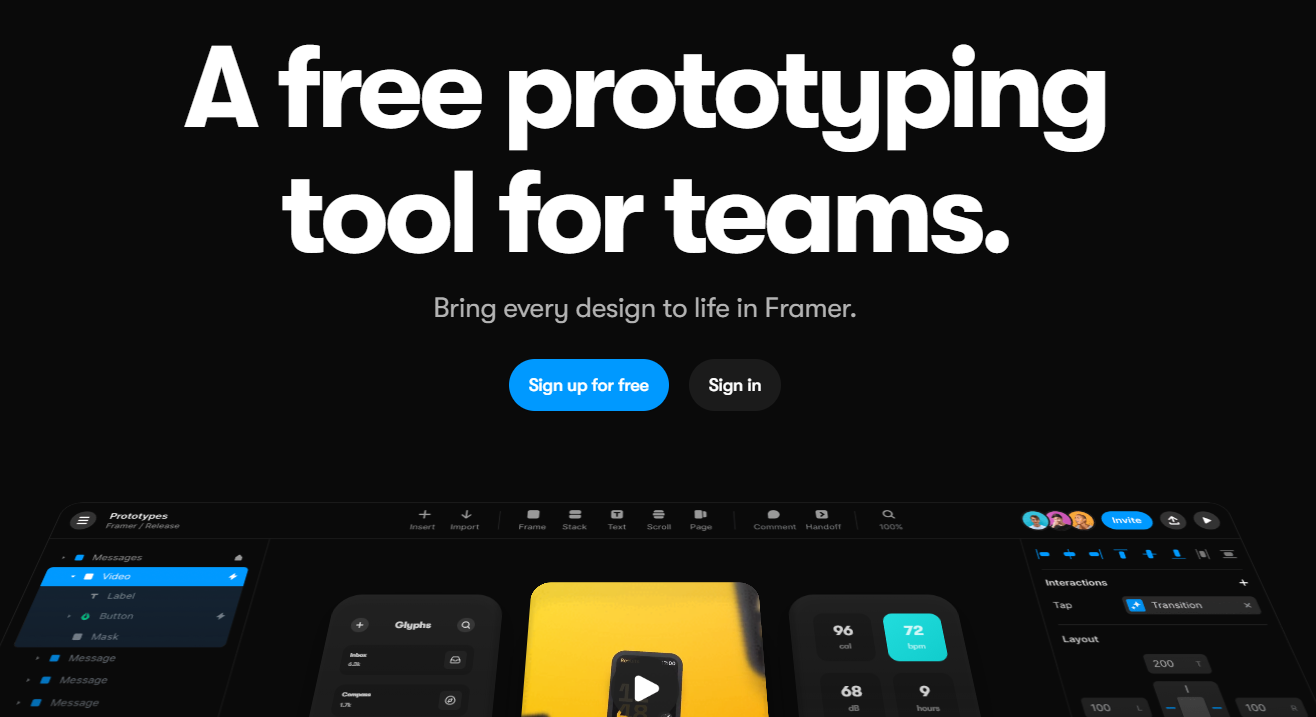 інструмент для прототипування на основі коду, хоча зібрати макет можна і тільки візуальними засобами. Дозволяє швидко тестувати отримані прототипи і ділитися ними в хмарі.