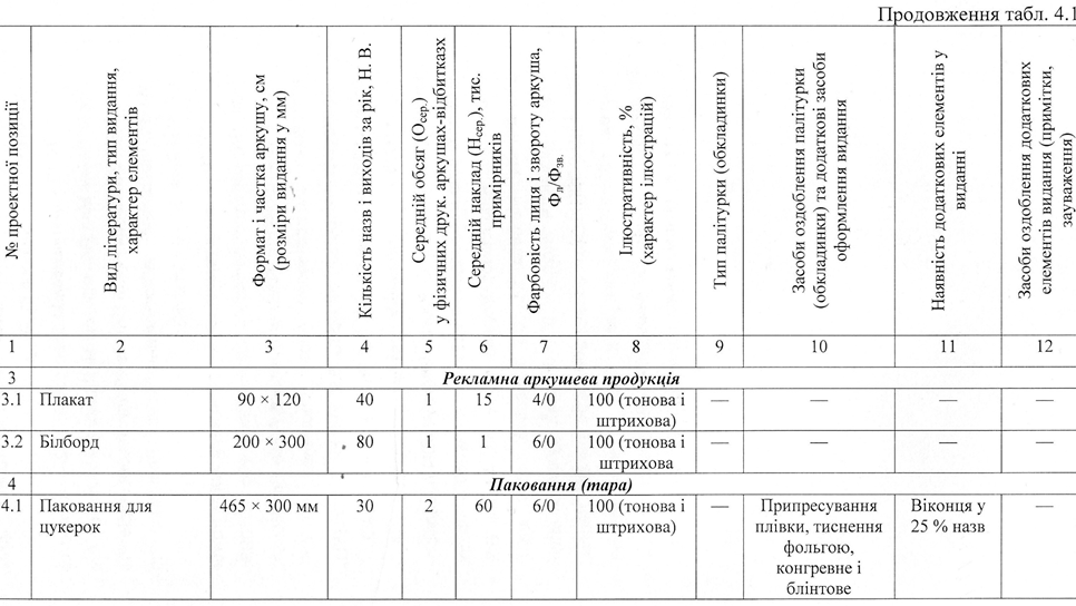 - тип продукції: газетна, журнальна, книжкова, пакувальна;
