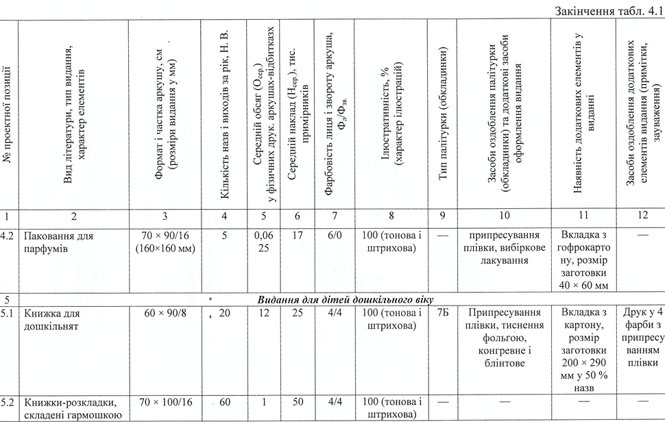 Тематичний план видавництва або виробнича програма підприємства, що проектується, визначають їх технологічні концепції та долі ринку.