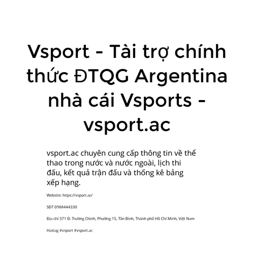 vsport.ac chuyên cung cấp thông tin về thể thao trong nước và nước ngoài, lịch thi đấu, kết quả trận đấu và thống kê bảng xếp hạng. Website: https://vsport.ac/ SĐT 0988444330 Địa chỉ 371 Đ. Trường Chinh, Phường 15, Tân Bình, Thàn