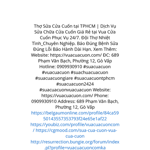 Website: https://vuacuacuon.com/ Thợ Sửa Cửa Cuốn tại TPHCM | Dịch Vụ Sửa Chữa Cửa Cuốn Giá Rẻ tại Vua Cửa Cuốn Phục Vụ 24/7. Đội Thợ Nhiệt Tình_Chuyên Nghiệp. Báo Đúng Bệnh Sửa Đúng Lỗi Bảo Hành Dài Hạn. Xem Thêm: Website: https://vuacuacuon.com/
