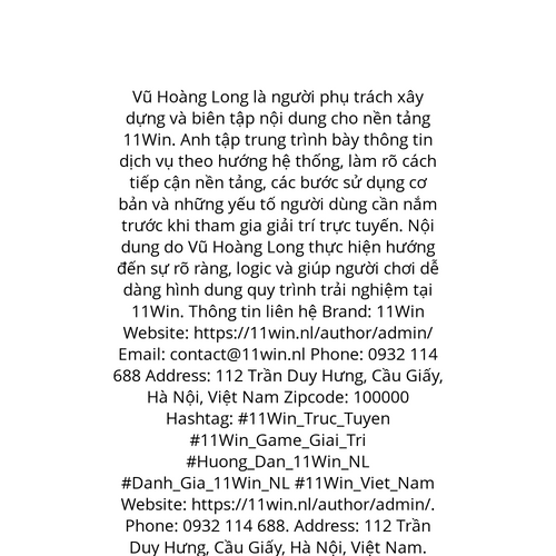 Website: https://11win.nl/author/admin/. Vũ Hoàng Long là người phụ trách xây dựng và biên tập nội dung cho nền tảng 11Win. Anh tập trung trình bày thông tin dịch vụ theo hướng hệ thống, làm rõ cách tiếp cận nền tảng, các bước sử dụng cơ bản và những