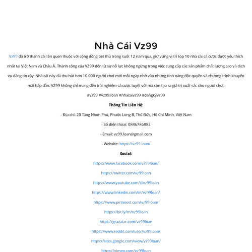 Vz99 đã trở thành cái tên quen thuộc với cộng đồng bet thủ trong suốt 12 năm qua, giữ vững vị trí top 10 nhà cái cá cược được yêu thích nhất tại Việt Nam và Châu Á. #vz99 #vz99.loan #nhacaivz99 #dangkyvz99 - Website: https://vz99.loan/