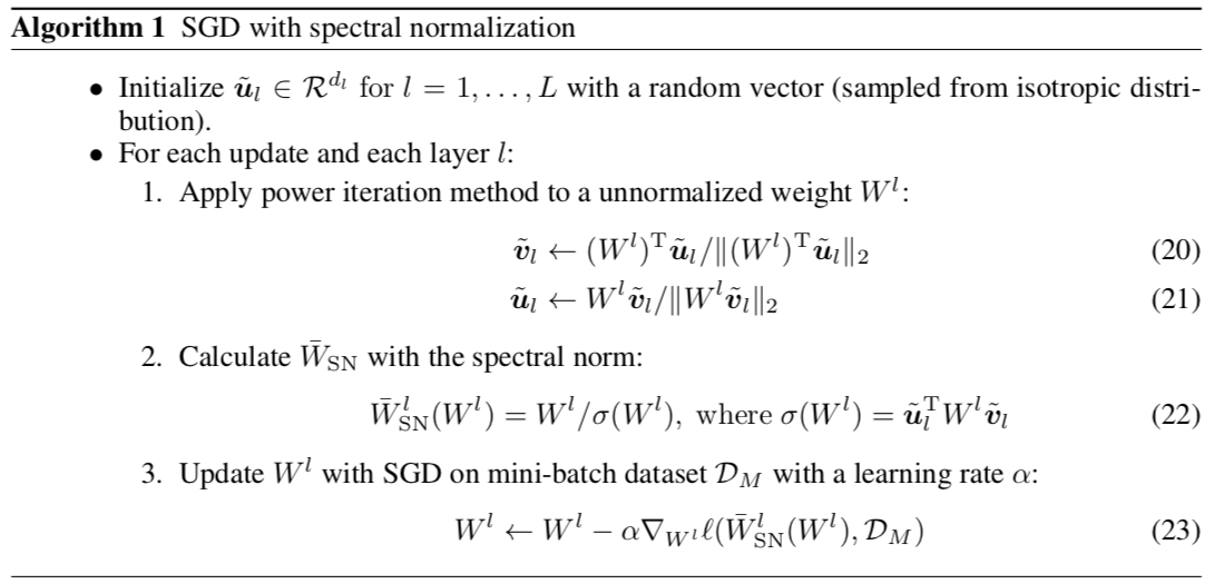 $$\begin{aligned}&W^l_{SN}=W^l/\sigma(W^l)\\&\sigma(\cdot)\text { denotes spectral norm, maximum singluar value}\end{aligned}$$