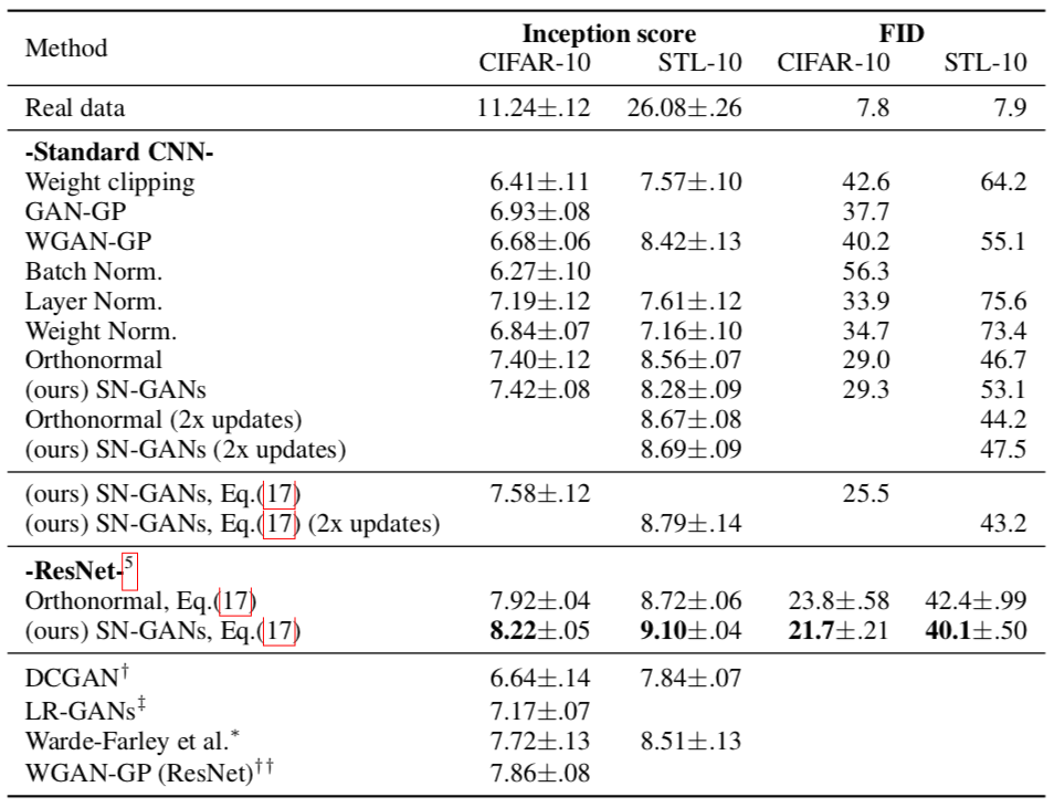 - SN-GAN [6]: Spectral Normalization