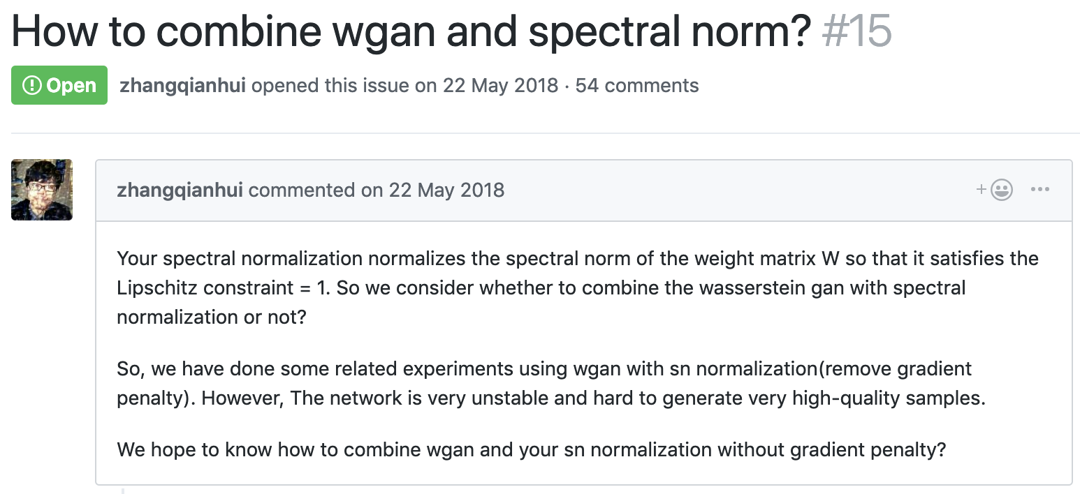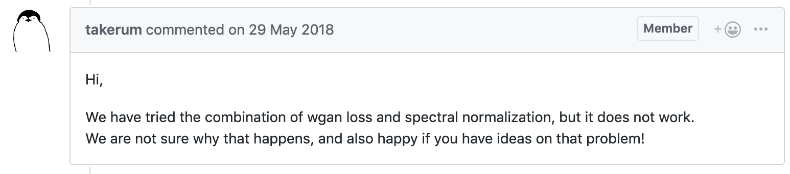 - Miyato, Takeru, et al. "Spectral normalization for generative adversarial networks." arXiv preprint arXiv:1802.05957 (2018).
