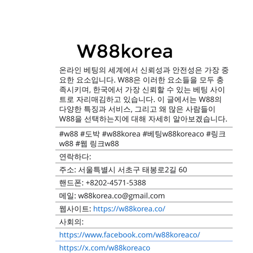 온라인 베팅의 세계에서 신뢰성과 안전성은 가장 중요한 요소입니다. W88은 이러한 요소들을 모두 충족시키며, 한국에서 가장 신뢰할 수 있는 베팅 사이트로 자리매김하고 있습니다. 이 글에서는 W88의 다양한 특징과 서비스, 그리고 왜 많은 사람들이 W88을 선택하는지에 대해 자세히 알아보겠습니다. #w88 #도박 #w88korea #베팅w88koreaco #링크w88 #웹 링크w88 연락하다: 주소: 서울특별시 서초구 태봉로2길 60 핸드폰: +