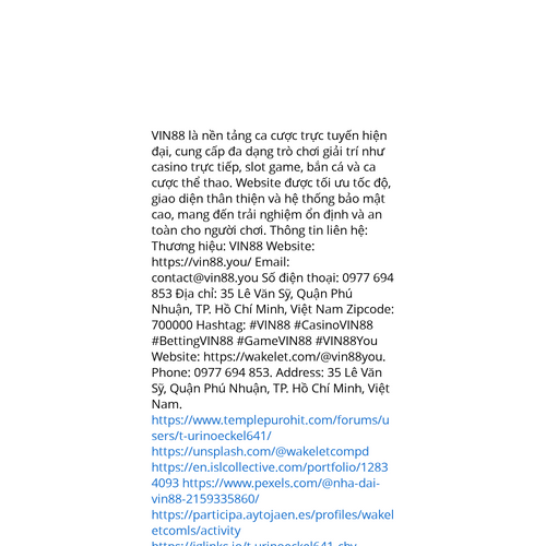 Website: https://wakelet.com/@vin88you. VIN88 là nền tảng ca cược trực tuyến hiện đại, cung cấp đa dạng trò chơi giải trí như casino trực tiếp, slot game, bắn cá và ca cược thể thao. Website được tối ưu tốc độ, giao diện thân thiện và hệ thống bảo mậ