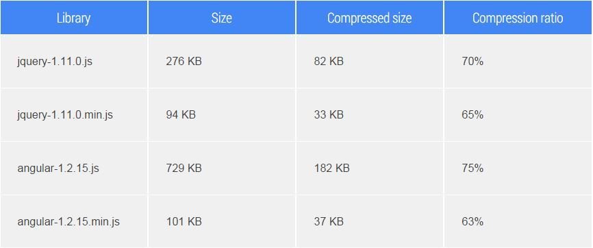- Minify JavaScript , CSS and HTML files.