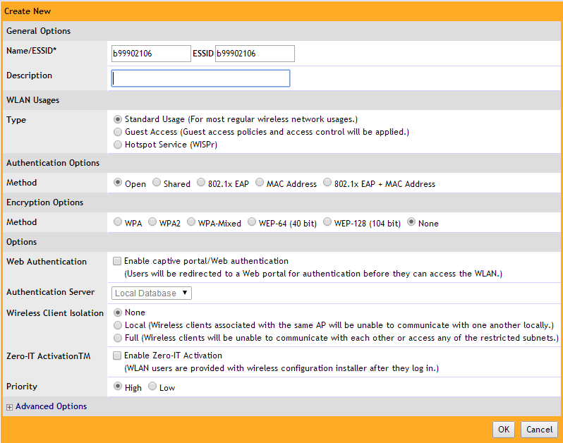 - SSID / authentication management