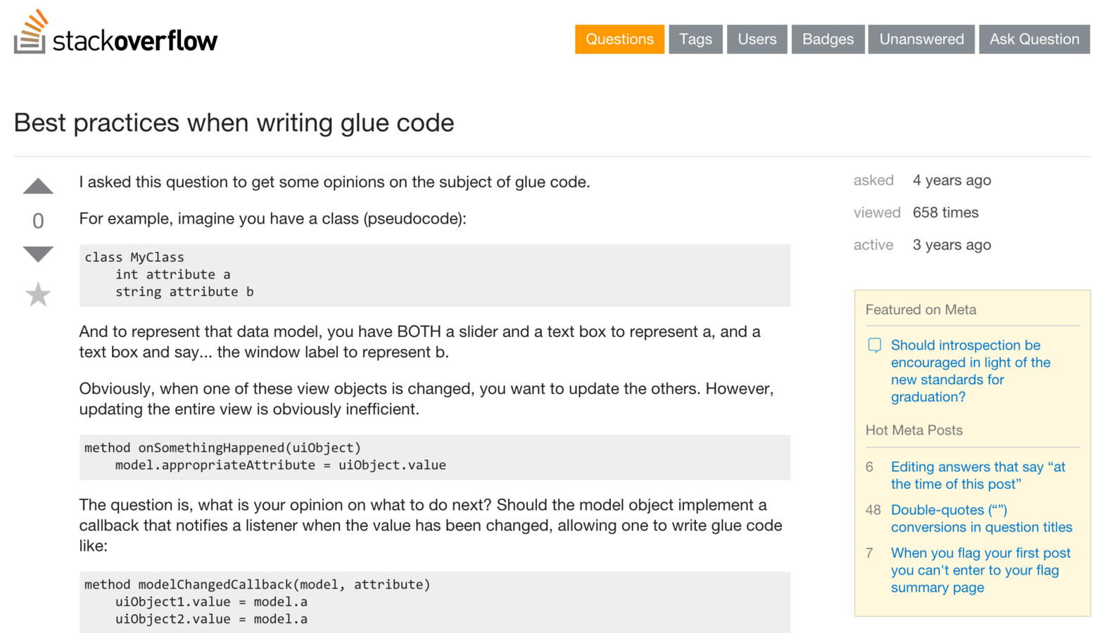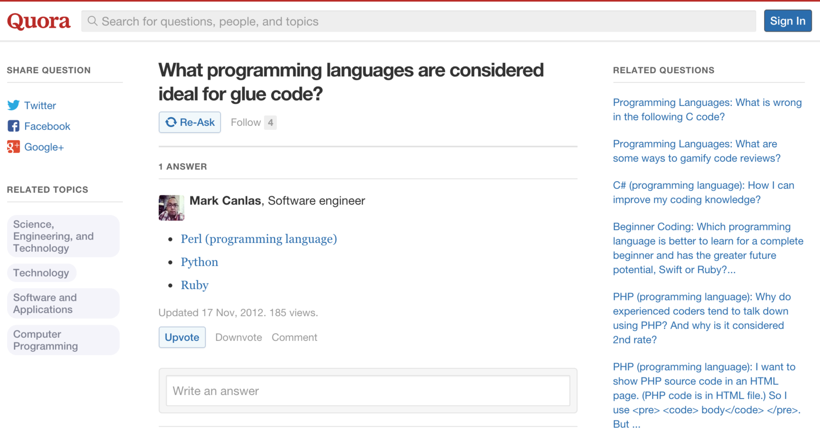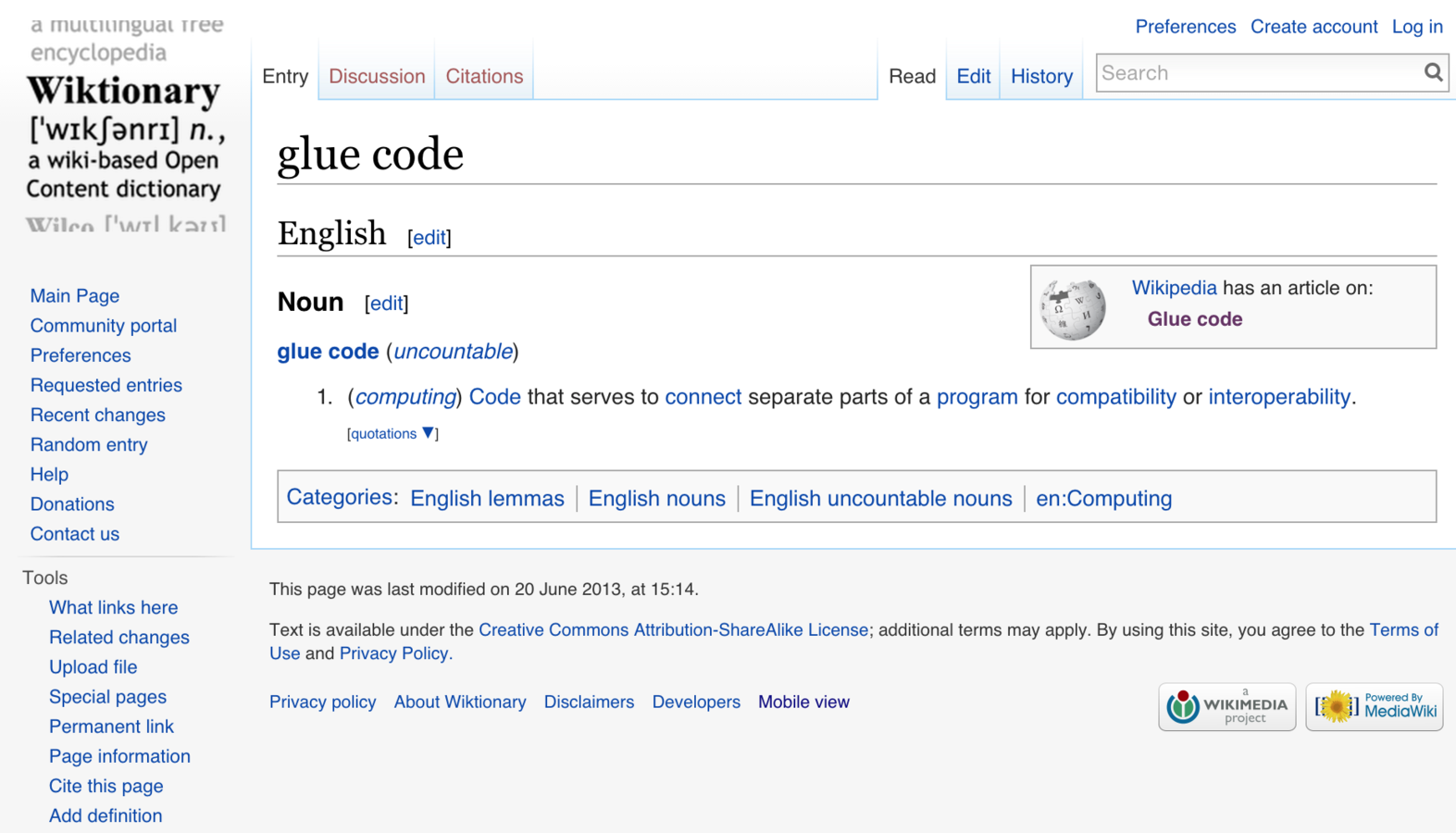(computing) Code that serves to connect separate parts of a program for compatibility or interoperability.