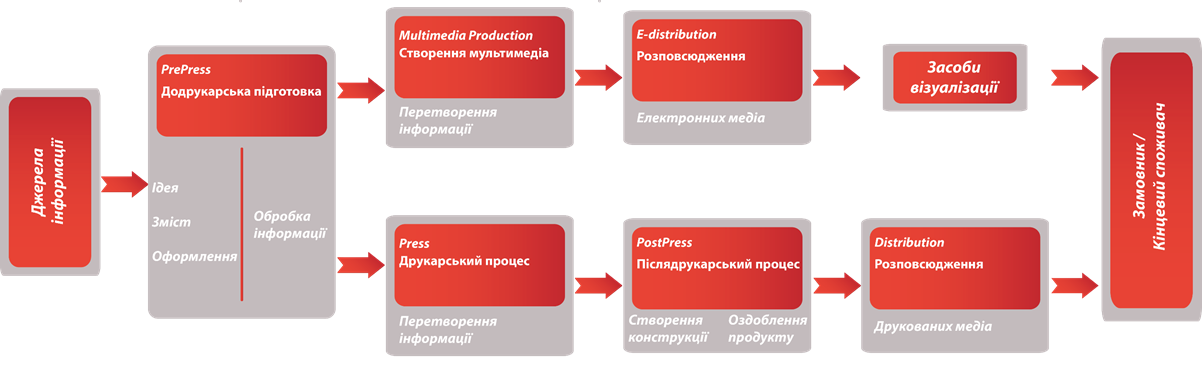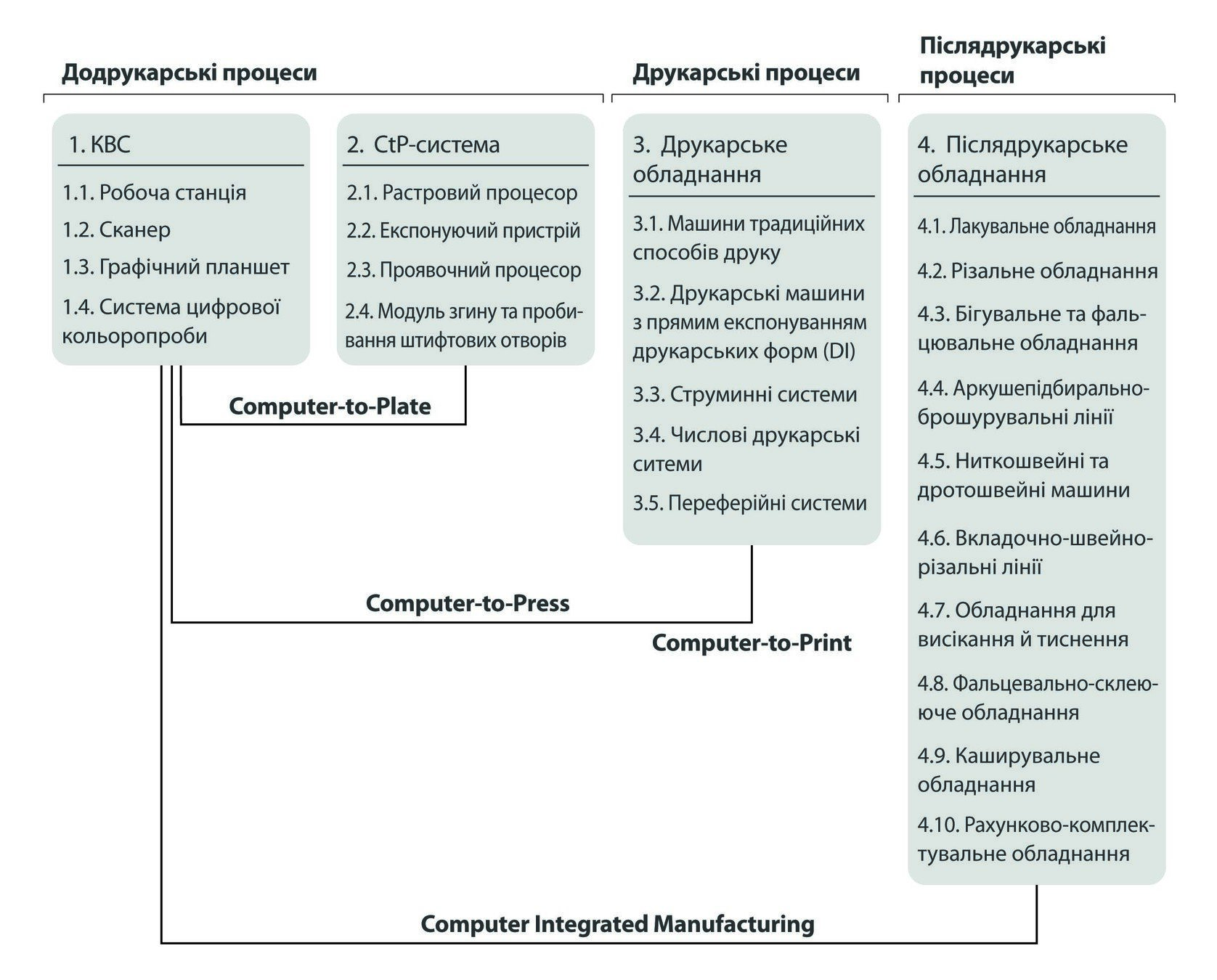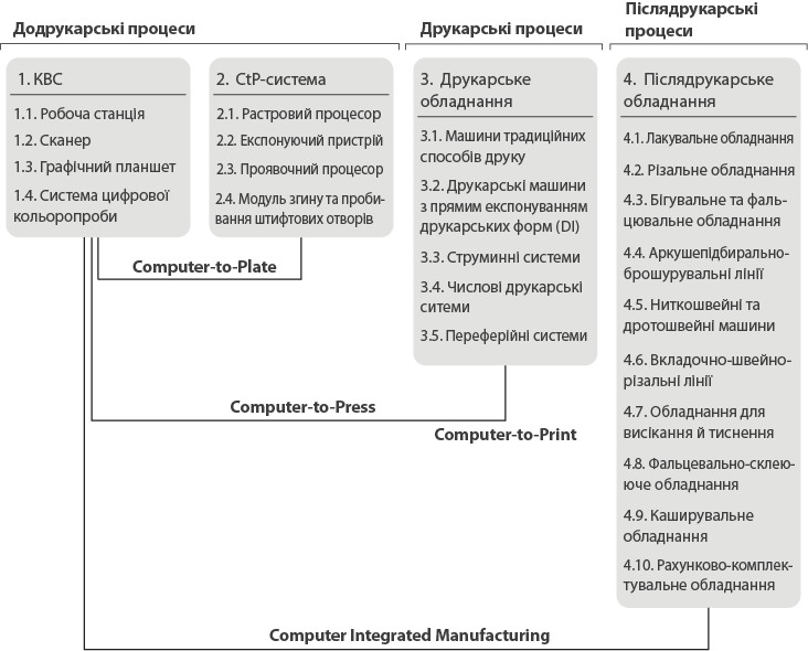 характеризуються різноманітністю виробничих операцій та відповідно-го виробничого обладнання (модулів, машин, агрегатів, систем). Тому ефективність післядрукарських процесів залежить не лише від виробничих потужностей, а й багато в чому від логістичної взаємодії.