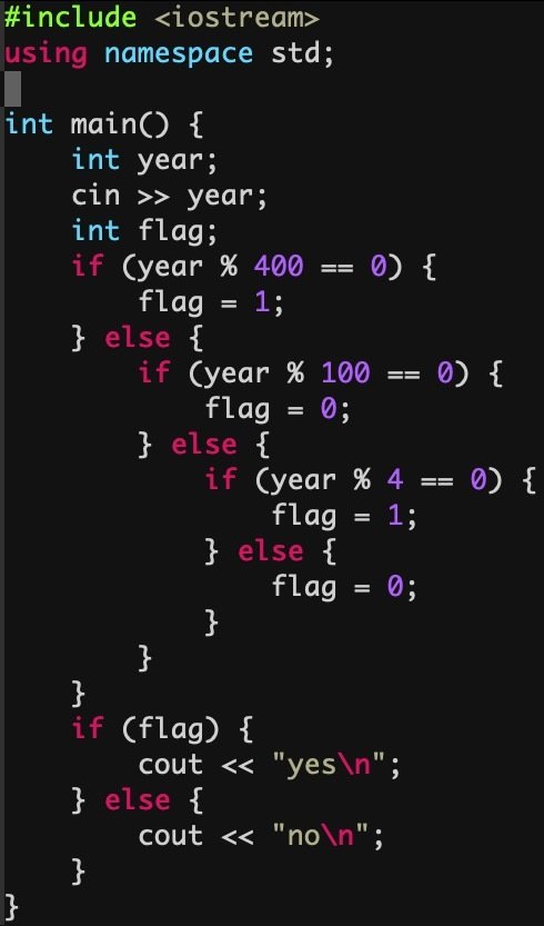 - 除以4不可整除,為平年。