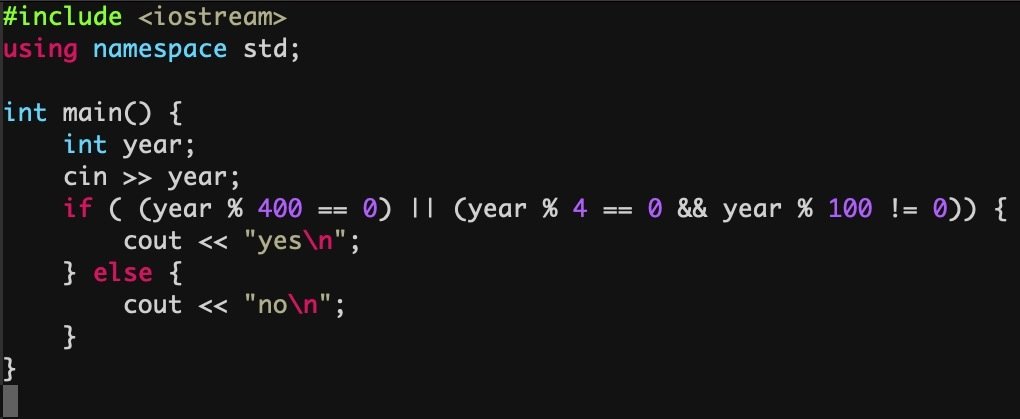 - 除以4可整除但除以100不可整除,為閏年。