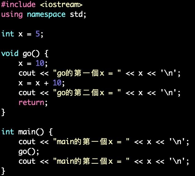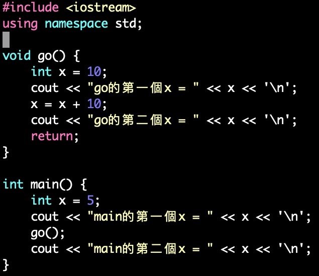 (在函式裡的變數稱為區域變數)