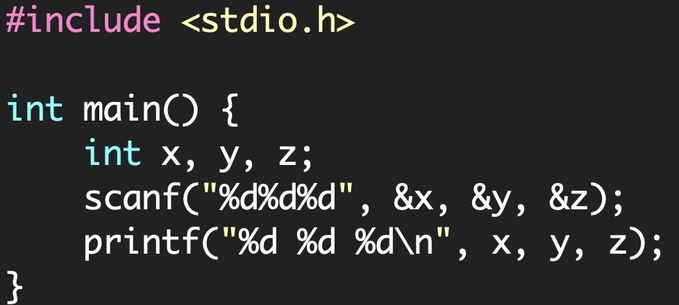 此處scanf的三個%d中間可以不留空,也可以有空格